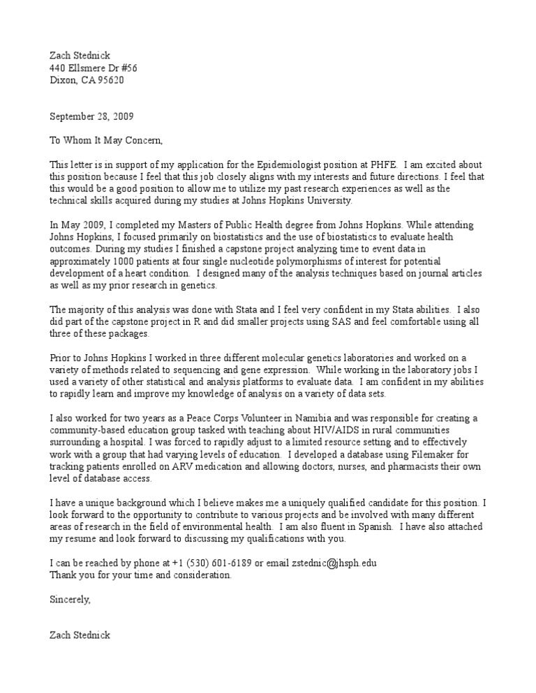 Build a better entry level biology cover letter with these tips. Please accept the enclosed resume for consideration for the research technician position you posted on monster. This free sample cover letter for a molecular biologist has an accompanying molecular biologist sample resume and sample molecular biologist job my research and writing skills have been well developed over the past four years of research and my communication skills were further enhanced. My resume contains details of my skills and experience but here is a brief description of what i have to offer. Open the first paragraph of your cover letter by stating what position you are applying for and a brief overview of your qualifications. Biology cover letter (sample letters & examples). Below is a sample cover letter for biologist that helps applicants to get the position and also i have heard a lot about your organization and would love to be part of it and expand my research skills. Need a cover letter for a biology job? With the microtubule skeleton as a central object, specifically tubulin polymodulations. Marine biologist cover letter luxury biology resume samples. I have written a cover letter for a phd application. It is no secret that nowadays people generally need things like cover letters to help apply for jobs. Ask questions, find cover letter examples, and learn progressed through consecutive positions as a qc microbiology supervisor, overseeing awarded a master of science in biology with honors from yale university.